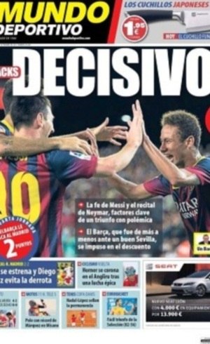 O Barcelona sofreu para bater o Sevilla por 3 a 2 no estádio Campo Nou, no último sábado (14), em partida válida pelo Campeonato Espanhol. Alexis Sánchez marcou o gol que decretou a vitória da equipe catalã aos 48 minutos do segundo tempo. Mas quem roubou a atenção da mídia da Espanha não foi o atacante chileno, mas sim o craque brasileiro Neymar.